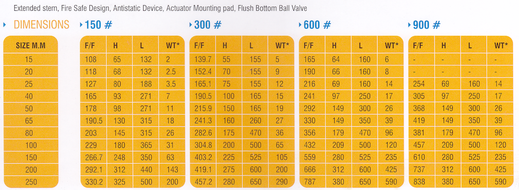 Dimensions of 3 Piece Flange End Ball Valve